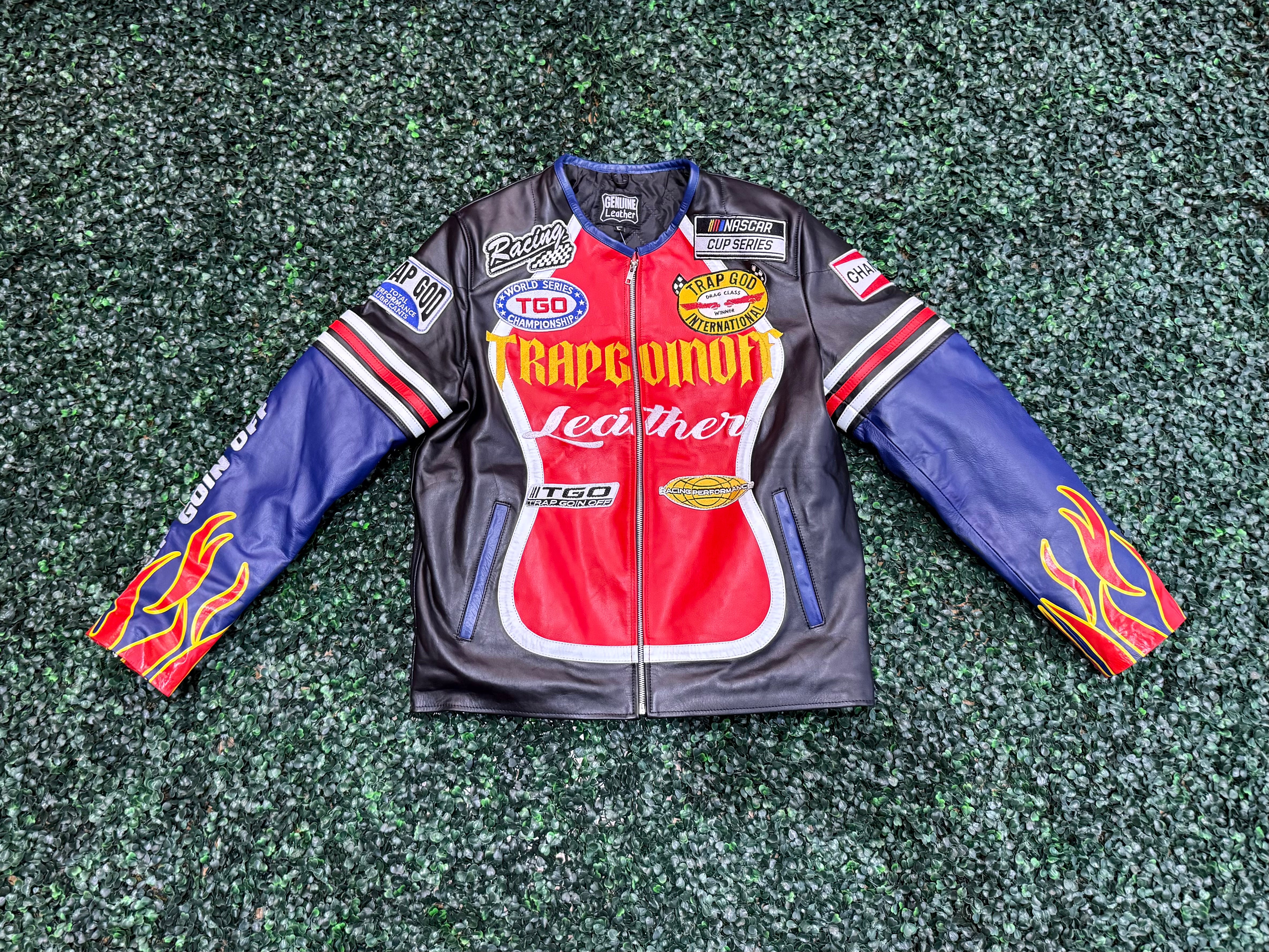 Trap Goin Off Rhinestone Leather Jacket
